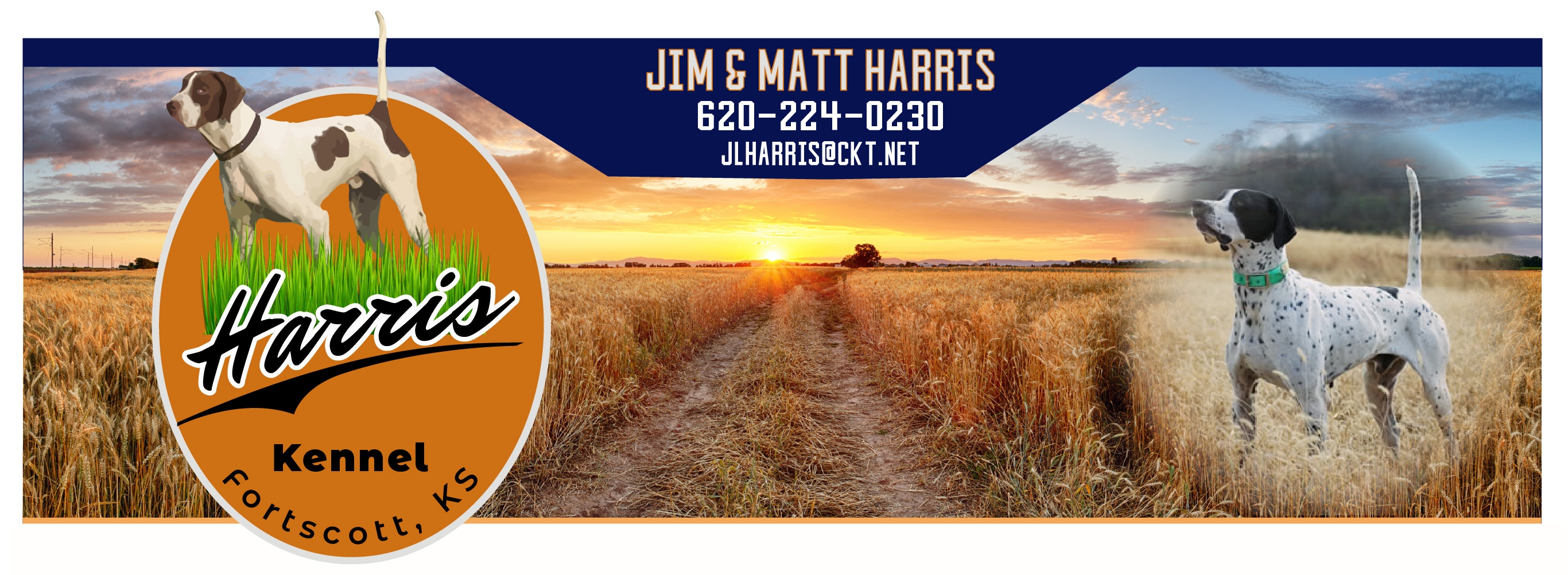Wild bird hunting has been a part of our family heritage for over 60 years and hunting quality dogs has become a way of life. Harris kennels is committed to breeding the very best gun dog in the country. We breed for intelligence, bird finding ability, early natural ability, a pleasing appearance and the desire to please. A longe range vision was put in place years ago to breed and maintain the best gun dogs possible. For us the ultimate gun dog should first and foremost be a superior bird finder with unmatched intensity on its game. We believe a dog should be judged on his desire to find, ability to locate, and manners on game. The true superior bird finder must not ony have a super nose, a natural willingness to hunt the thickest cover, but most of all a burning desire inside them to find birds. We strive to breed dogs that are confirmation sound and stylish on point. We look for dogs that have the temperament to work with their handler and not against him. We go to hunt birds not our dogs so they must be willing to handle. We guarantee that every one of these characteristics will be carefully evaluated and kept in mind when planning each litter of pups.